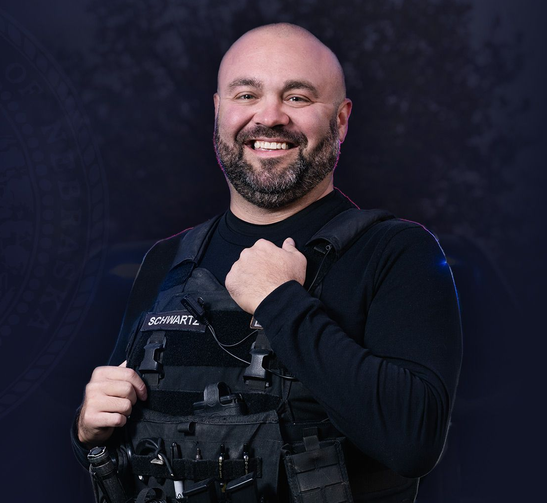 Derek Schwartz is a husband, father, police officer, and proud Nebraska farm kid who has built his life around hard work, service, and integrity.